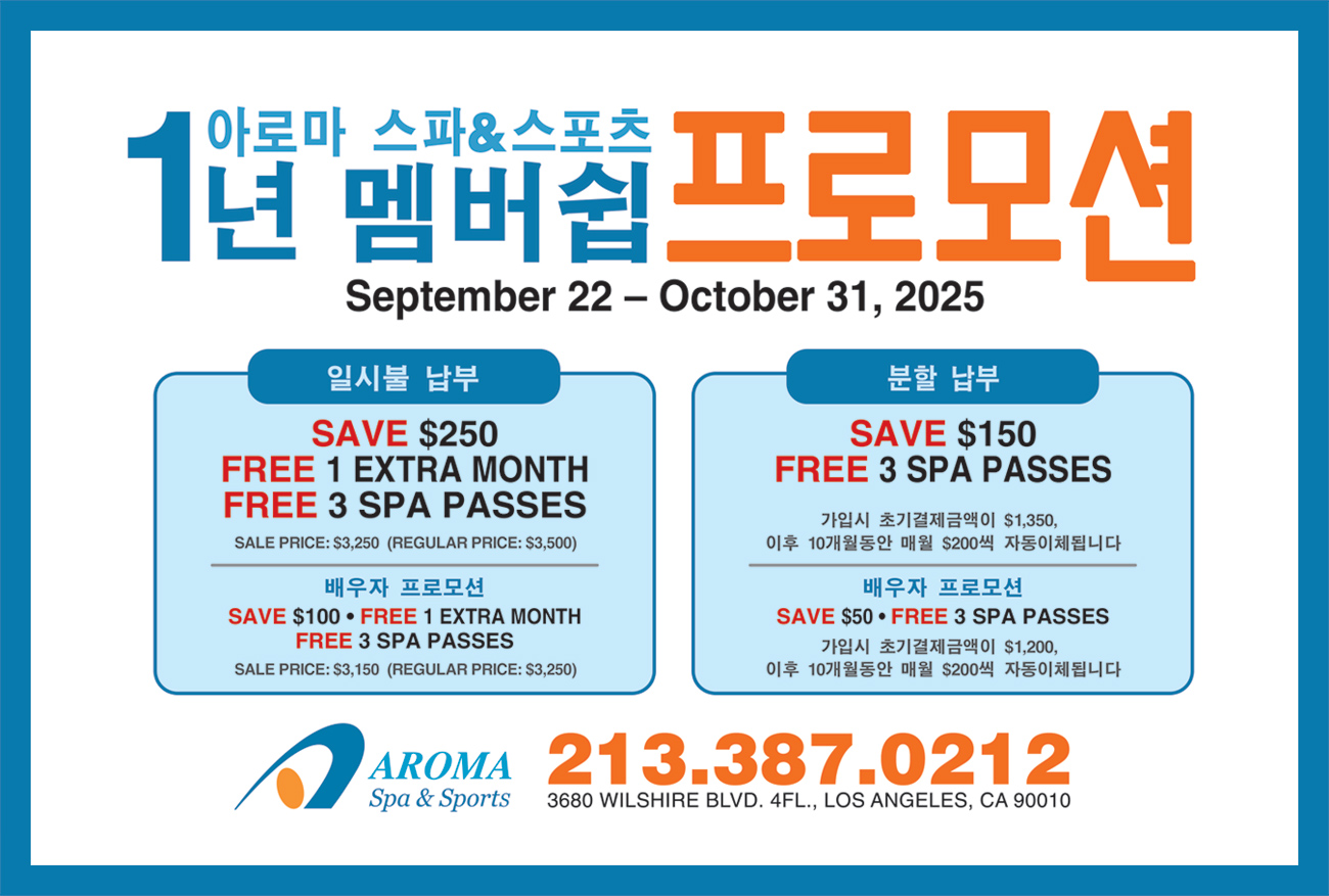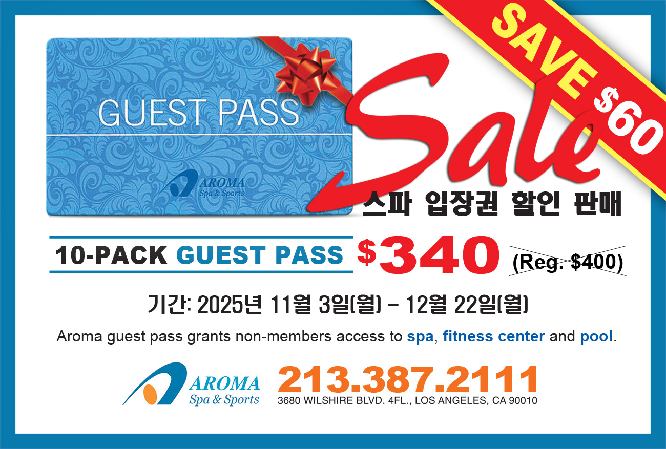 Aroma Spa & Sports offers personalized massage and spa treatments in an elegant, welcoming setting. Bask in a selection of sauna styles and temperature options: Steam, Dry, Clay, Jade, Korean Medicinal Healing Stone, Thermo-infrared ray; plus hot, temperate and cold pools and tubs.